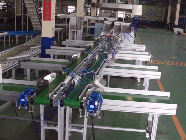 結構形式有:槽型皮帶機、平型皮帶機、爬坡皮帶機、轉彎皮帶機等多種形式,輸送 帶上還可增設提升擋板、裙邊等附件,能滿足各種工藝要求。輸送機兩側配以工作臺、加裝燈架,可作為電子儀表裝配,食品包裝等裝配線。